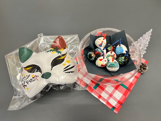 クリスマス仕様の絵付けをした狐面や土鈴は部屋に1つ飾るだけでよりクリスマス感を味わうことができます!!