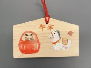手描きとハンコを組み合わせた、新年らしい絵馬🐎